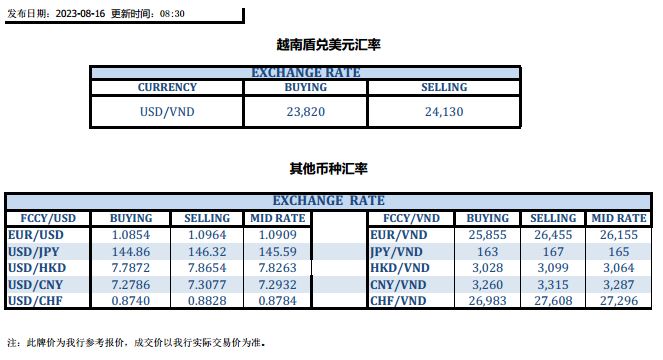 今日汇市 2023-08-16
