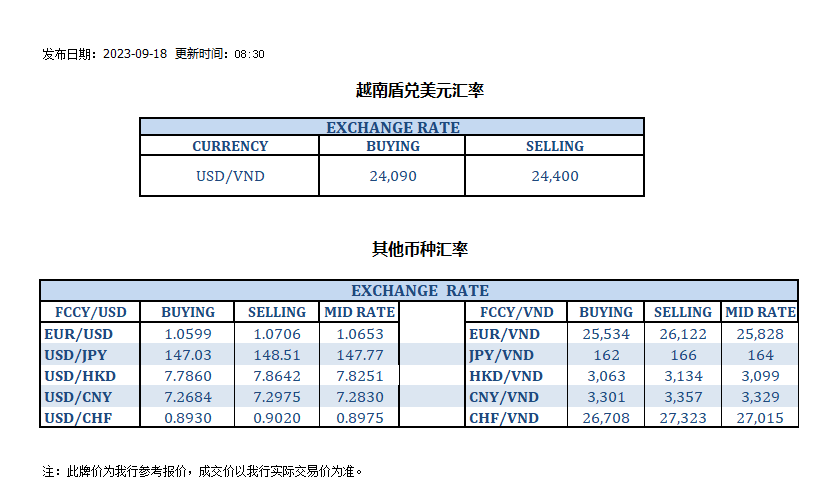 今日汇率 2023-09-18