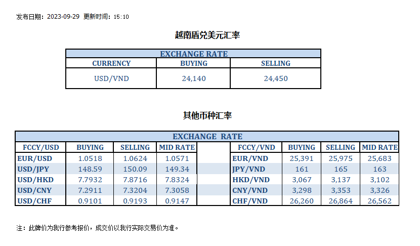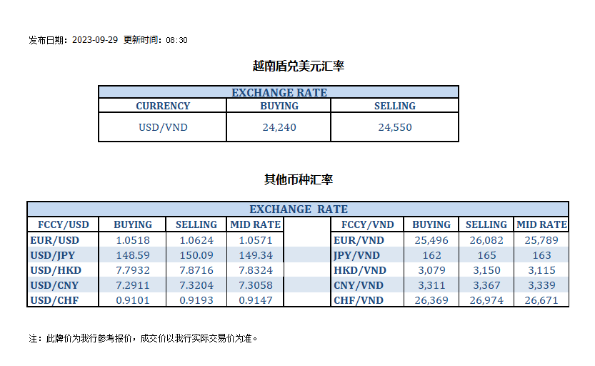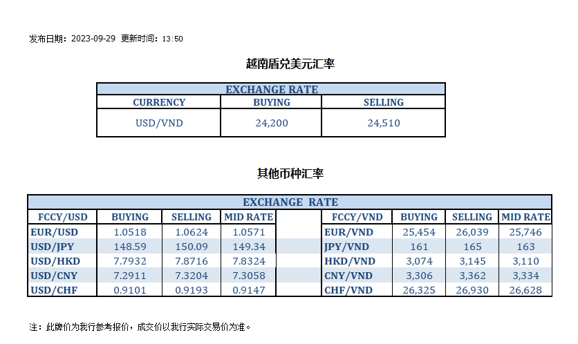 今日汇率 2023-09-29
